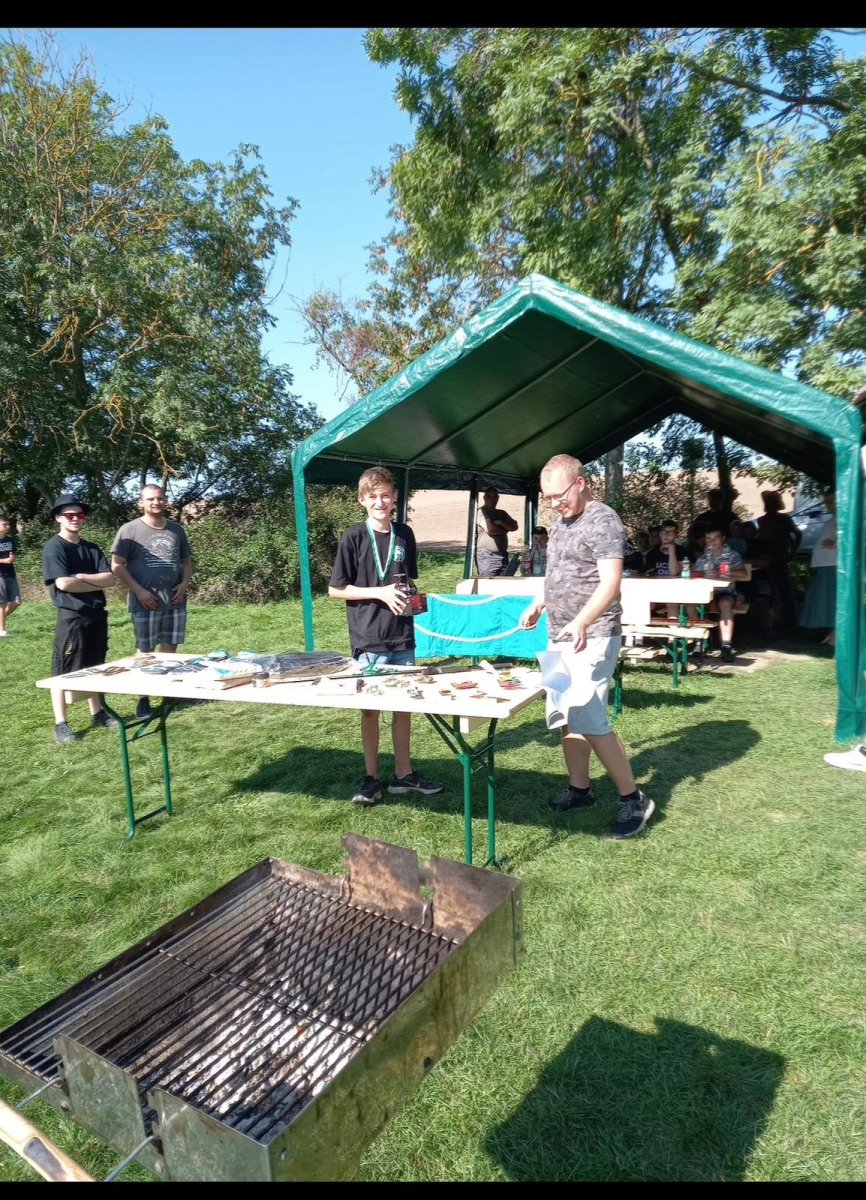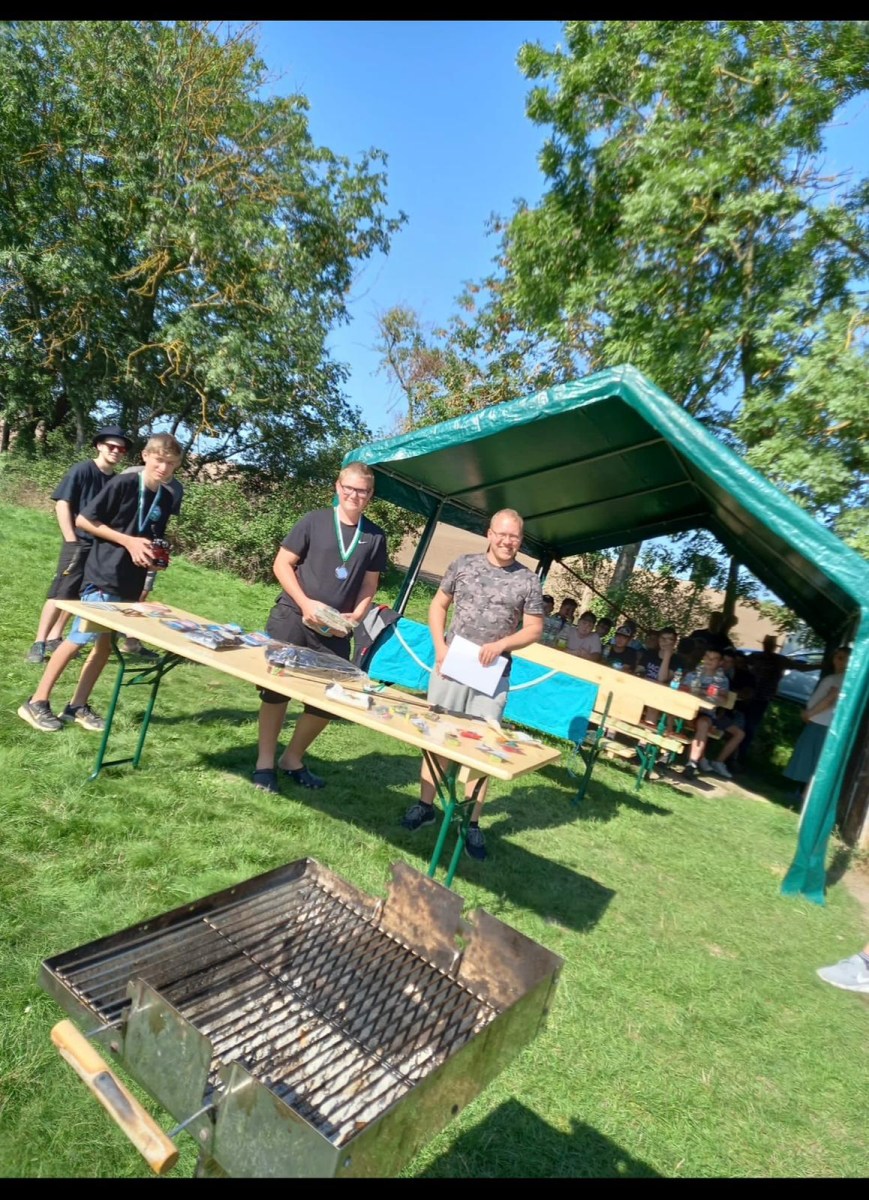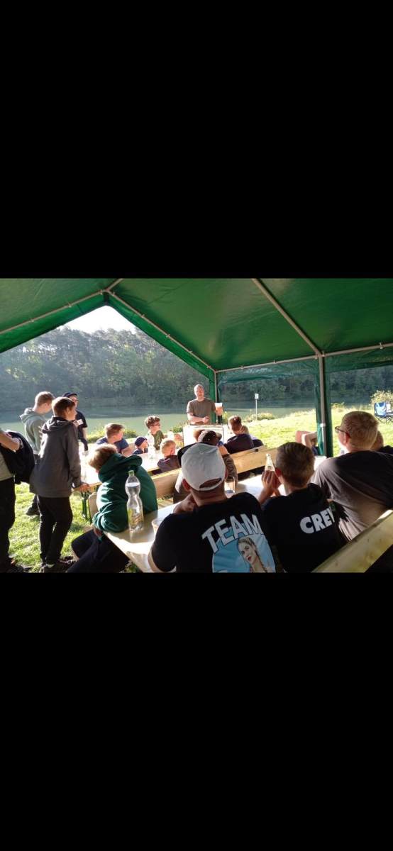 Am Wochenende der 36. Kalenderwoche fand unser Jugendausflug zu unserem Partnerverein nach Greussen Thüringen statt. Es war ein erfolgreiches Angel-Wochenende für die Jugendlichen. Neben jede Menge Spaß und Action wurden auch sehr schöne Fische gefangen. Wie die letzten Male wurden wir rundum königlich versorgt. Neben viel Angelpraxis am Wasser gab es auch wieder eine kleine Theorie-Einheit über das Angeln mit Futterkorb, wie man auf dem Bild sehr gut sieht. Ebenfalls wurde wieder ein kleines Quiz und Casting gemacht. Der Wanderpokal geht dank Felix Großkopf wieder an uns .